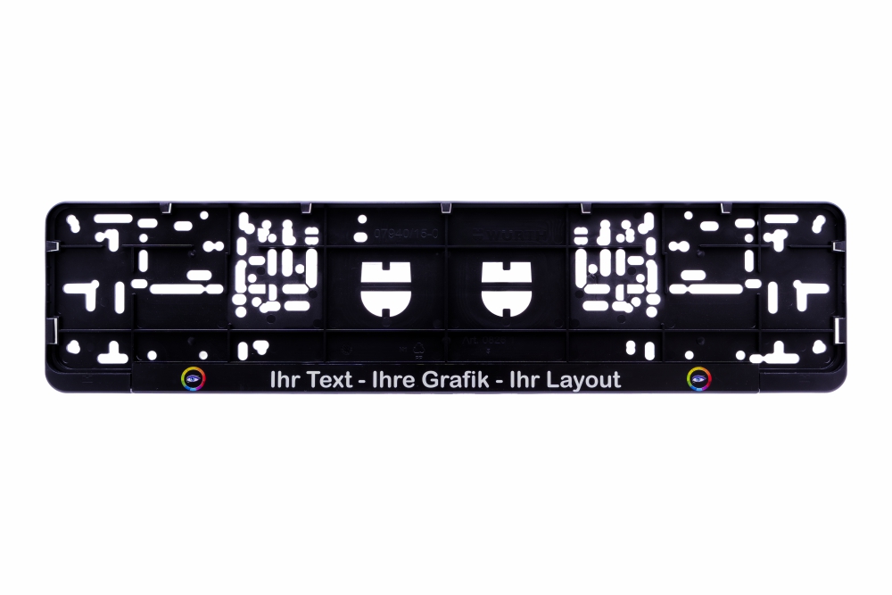 Kennzeichenhalter Würth Classic mit Leiste schwarz 520 x 110 mm mit Werbedruck / Digitaldruck